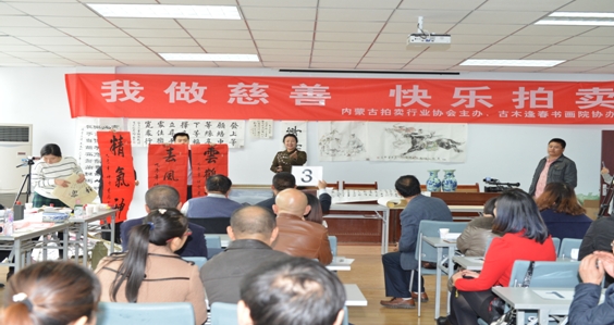 | [我做慈善,快樂拍賣] 2015年全國拍賣咨詢服務(wù)周 內(nèi)蒙古呼和浩特站活動集錦 中國拍賣行業(yè)協(xié)會每年組織全行業(yè)在全國范圍內(nèi)組織開展“全國拍賣咨詢服務(wù)周”活動,旨在進一步宣傳貫徹《中華人民共和國拍賣法》,普及拍賣知識,擴大拍賣的社會影響力,樹立拍賣行業(yè)的良好形象,增進社會公眾對拍賣行業(yè)的了解。 中拍協(xié)在今年的重慶宣傳工作會議部署,2015年的全國“拍賣咨詢服務(wù)周”活動的主題是“快樂拍賣”。我們內(nèi)蒙古拍賣行業(yè)協(xié)會按照中國拍賣行業(yè)協(xié)會的布置和要求,確定活動的主題是“我做慈善,快樂拍賣”。 2015年11月6日,內(nèi)蒙古拍賣行業(yè)協(xié)會以“我做慈善,快樂拍賣”為主題的公益慈善拍賣活動在內(nèi)蒙古自治區(qū)首府呼和浩特市舉行,本次活動由內(nèi)蒙古拍賣行業(yè)協(xié)會主辦,內(nèi)蒙古古木逢春書畫院協(xié)辦。內(nèi)蒙古拍賣行業(yè)協(xié)會會長李繼生、副會長兼秘書長賈世軍及全區(qū)部分拍賣企業(yè)負責人及部分拍賣師親臨現(xiàn)場參加本次活動。