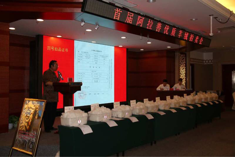 最終13件拍品中有10件拍品當場舉牌成交。阿拉善羊絨深受世界歡迎,細、白、長、耐拉伸的特點,使它深受高端服飾的寵愛,愛馬仕、路易威登等奢侈品經(jīng)常使用阿拉善羊絨加工高端服飾。
