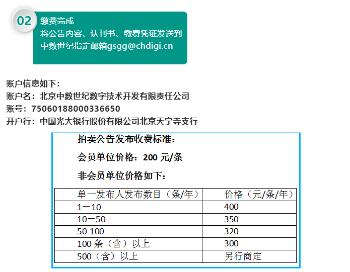 為了幫助企業(yè)更好的進行公告宣傳,也為了幫助企業(yè)節(jié)省成本費用開支。內(nèi)蒙古拍賣行業(yè)協(xié)會和北京拍賣行業(yè)協(xié)會一同與中國發(fā)展網(wǎng)達成協(xié)議,我協(xié)會會員企業(yè)每次公告費用為200元。